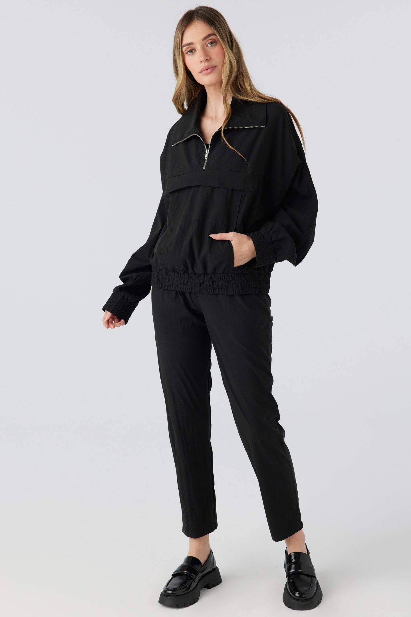 Our Madison Pant is a Sol favorite fit for travelling and living in. The elastic waistband features a self-drawcord detail and the fit throughout the leg is relaxed through the leg opening and has two pockets at the side seam - which makes this fit easy and relaxed to wear. The Madison Pant was designed to wear with our Mia Half Zip Jacket.