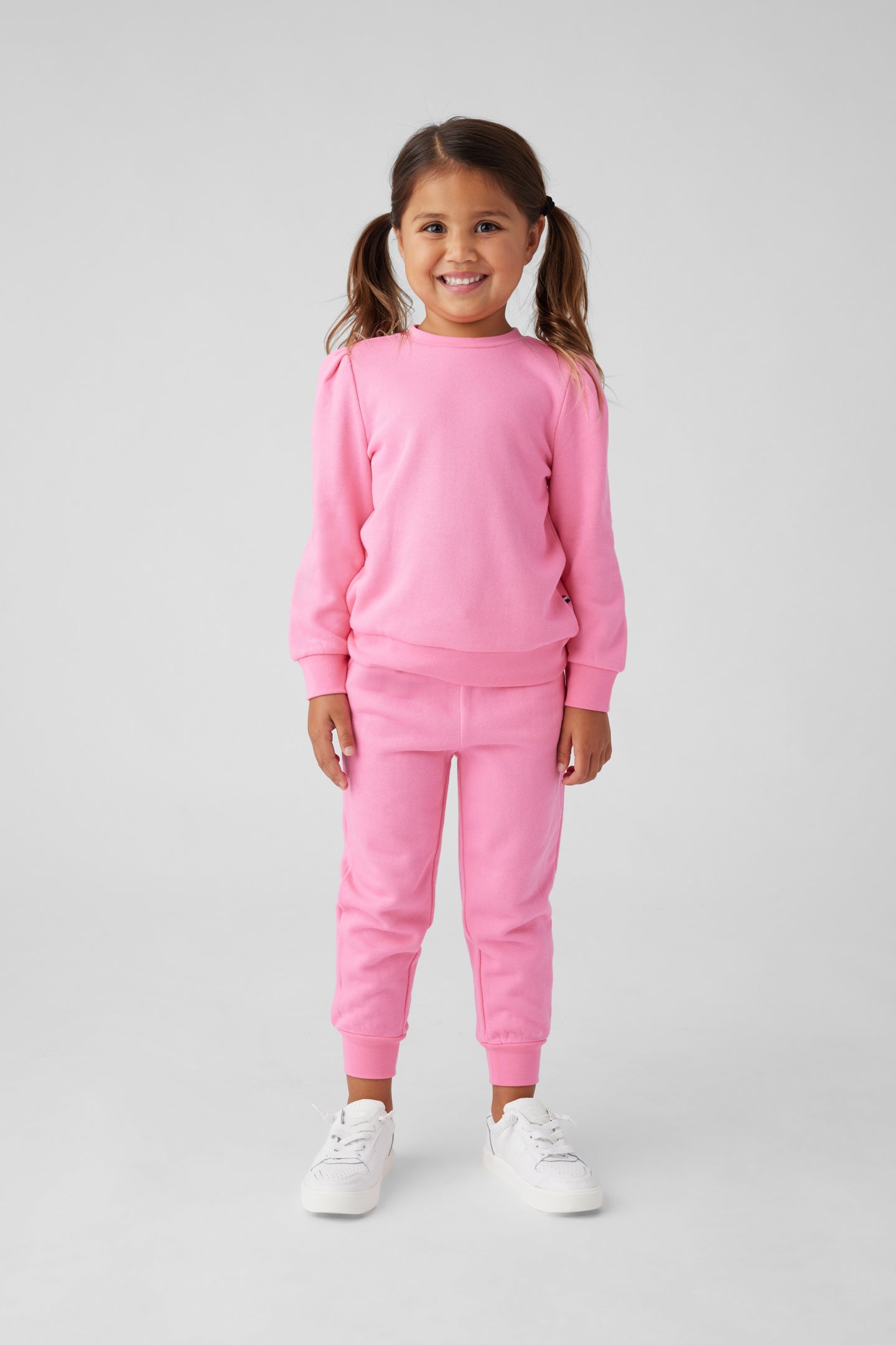- Long sleeve crewneck pullover with a girly twist featuring a pleated detail at shoulder and classic rib trim at sleeve, hem and neck opening