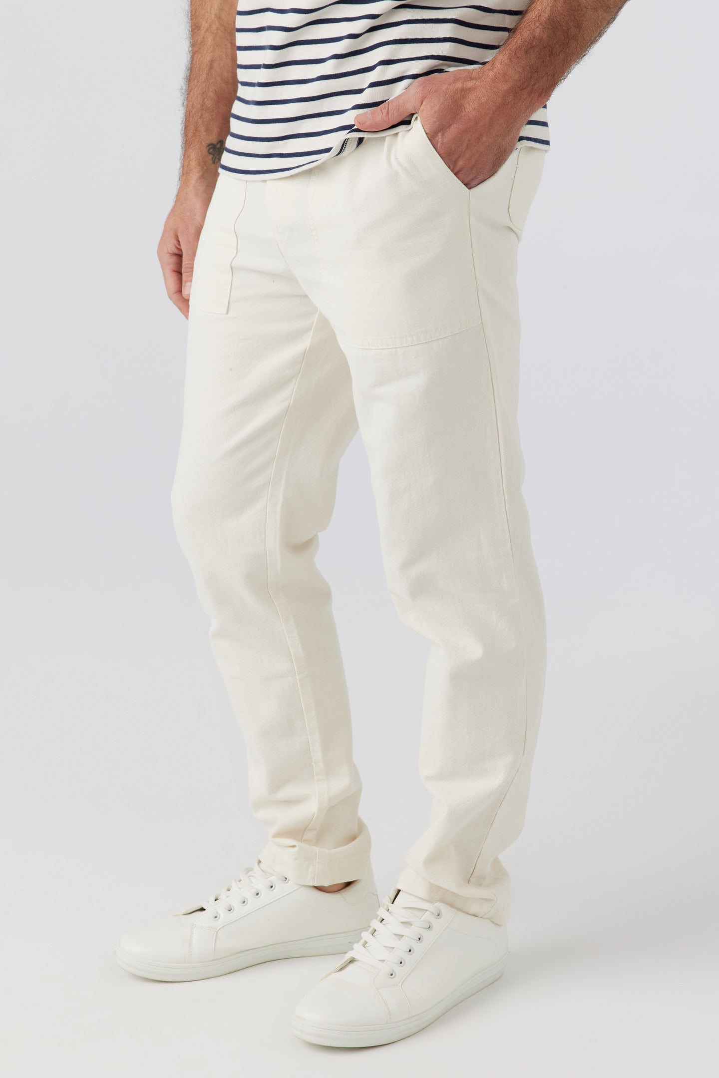 A favorite new fit at Sol Angeles - the westward pant takes the DNA of Sol style (cozy, transitional, timeless pieces) and elevates it in our soft textural cotton canvas fabric, features a clean front waistband with functional zip fly & button closure and an elasticized waist back, front and back patch pockets and relaxed fit throughout the leg with a 29 1/2" inseam. Designed to pair back to our Holloway button down or your favorite Sol tee.