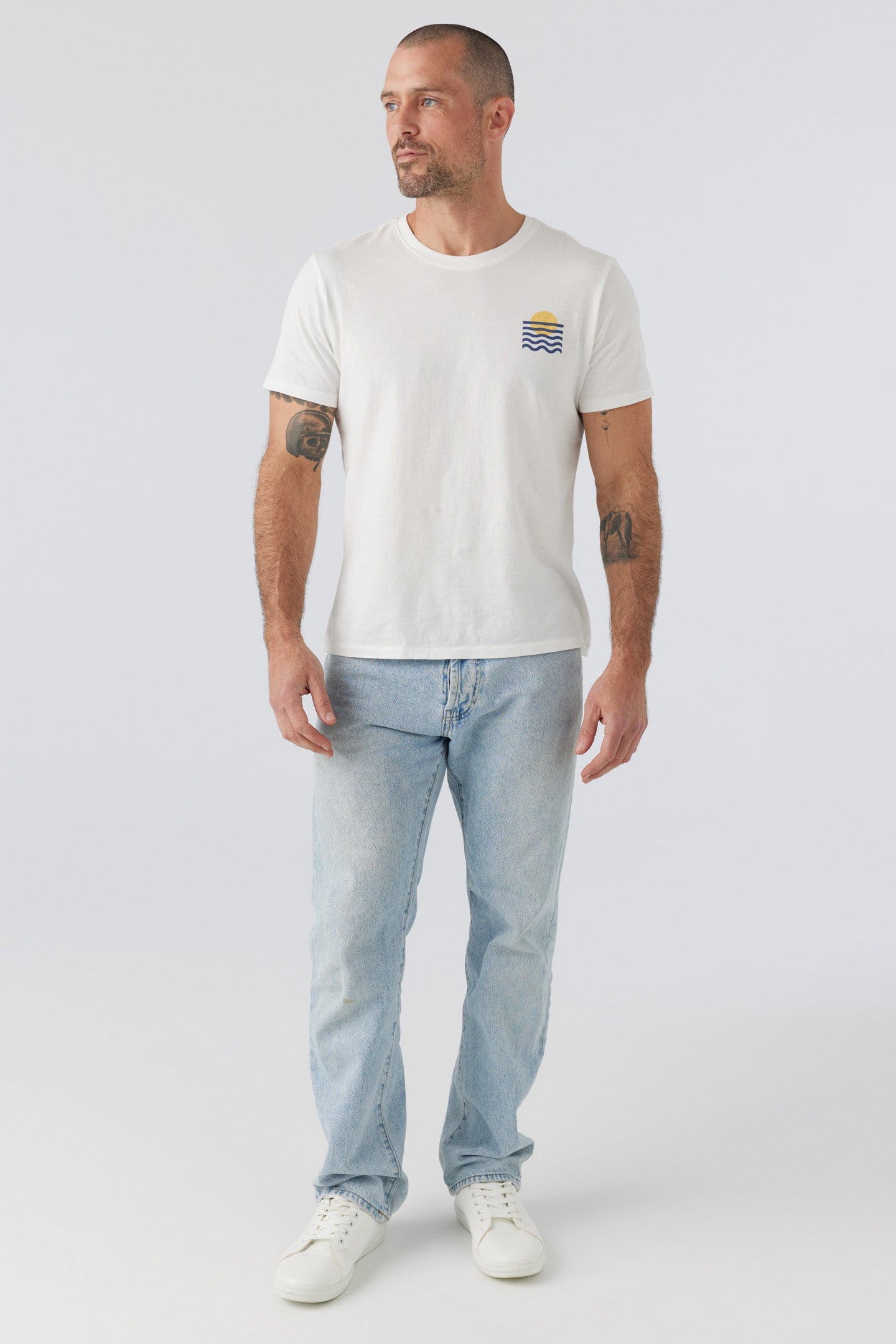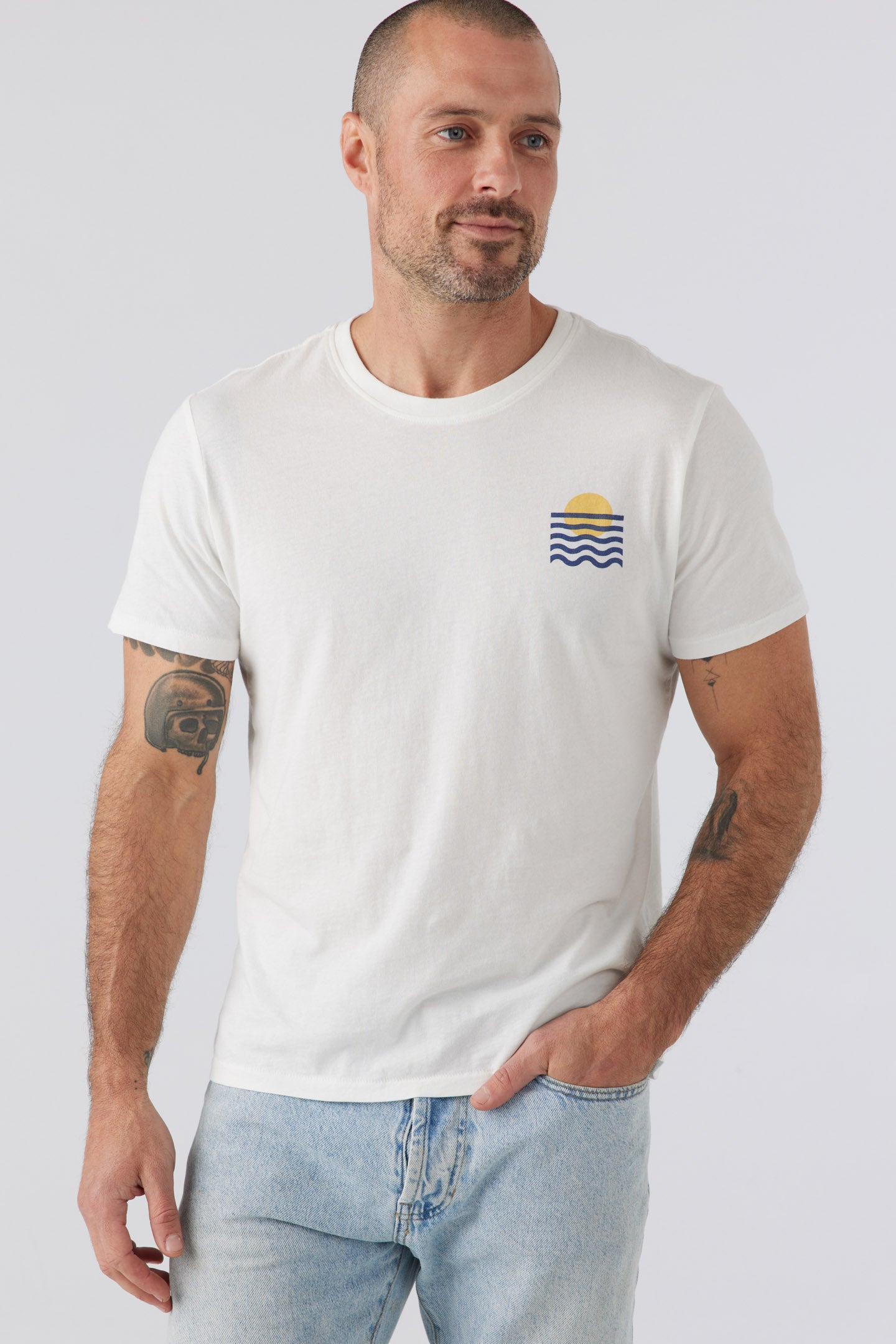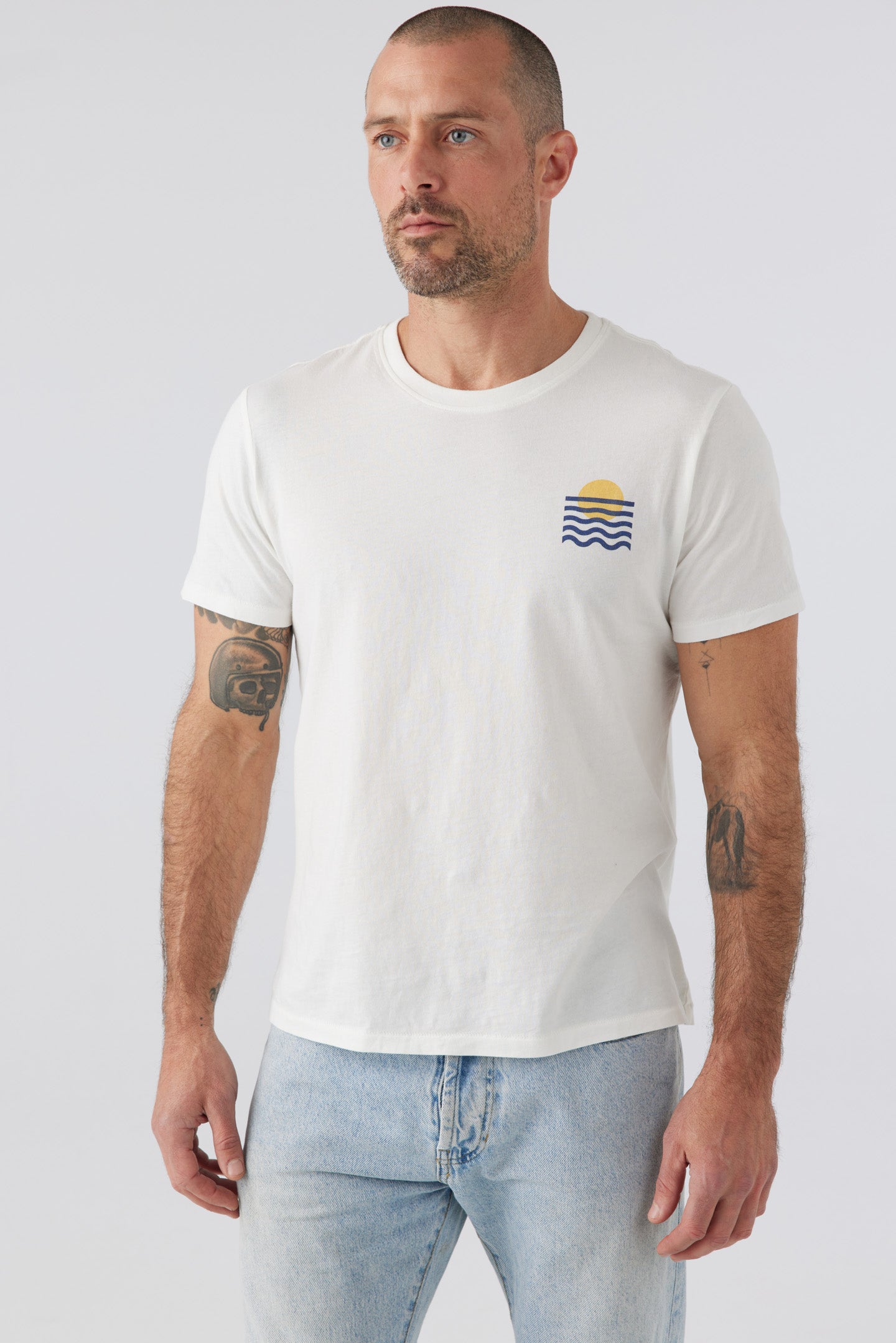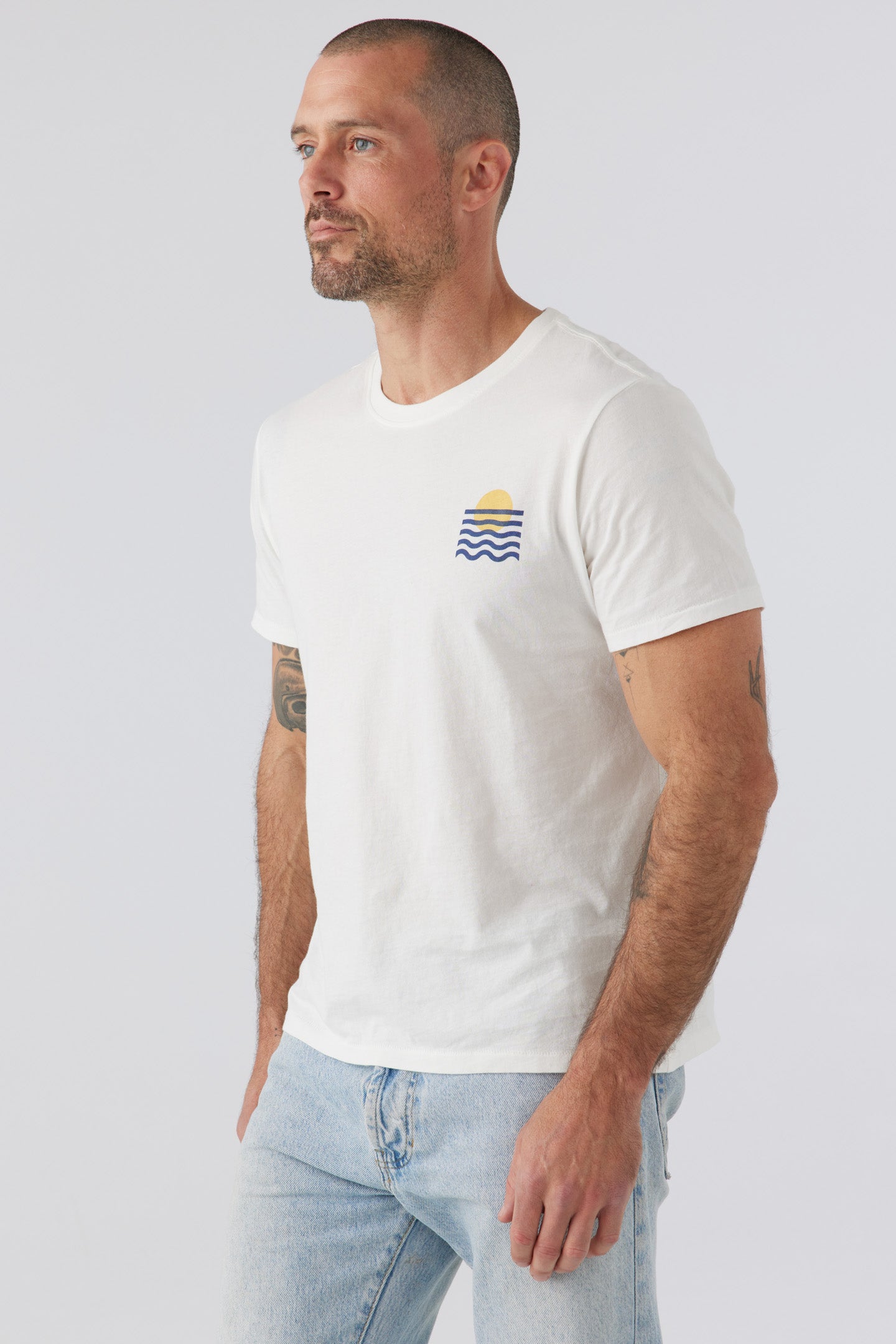 Our classic favorite core crew tee - perfectly relaxed throughout the body, and easy to wear un-tucked or tucked, dressed up or dressed down. Our graphic is inspired by the geometry in nature and of course, sunsets.