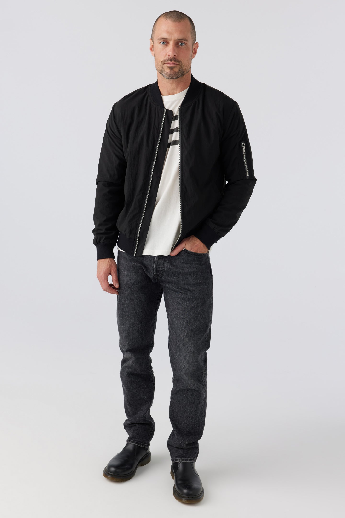 The bomber silhouette is core to Sol Angeles - it’s the third layer piece that pairs well with our favorite printable tees. Our Keith Bomber is ultra soft and cozy to wear. The fit is relaxed throughout the body to allow easy layering. Design features a two-way zip at center front, welt pockets with snap closure, a functional zip pocket at sleeve and rib trim detail at collar, waist & sleeve cuff. Designed to be paired back to any of our Sol Angeles bottoms or your favorite jeans.